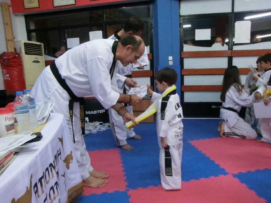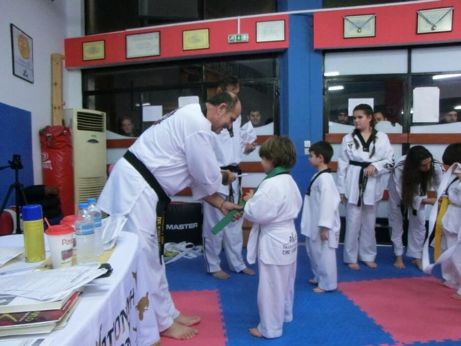 Επίσης έγινε η απονομή των μαύρων ζωνών στους αθλητές του συλλόγου που πήραν μέρος και αρίστευσαν στις εξετάσεις της Ελληνικής Ομοσπονδίας Ταεκβοντο.
